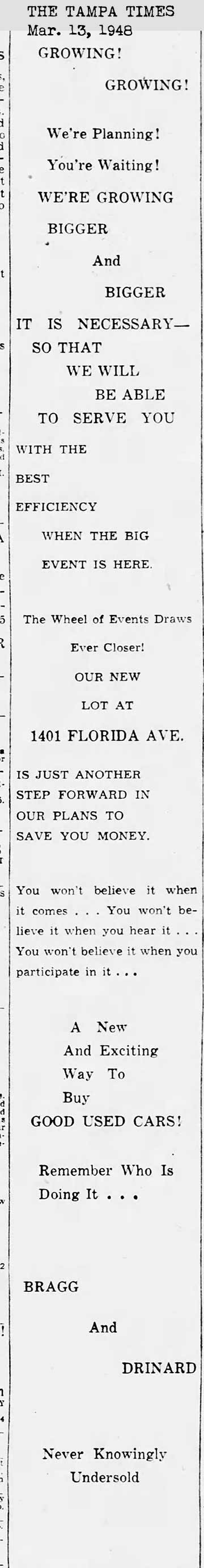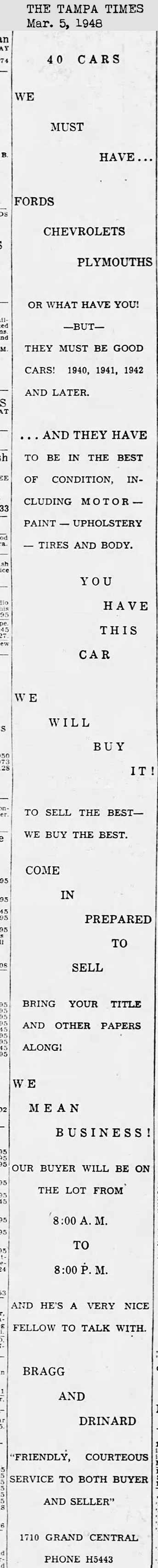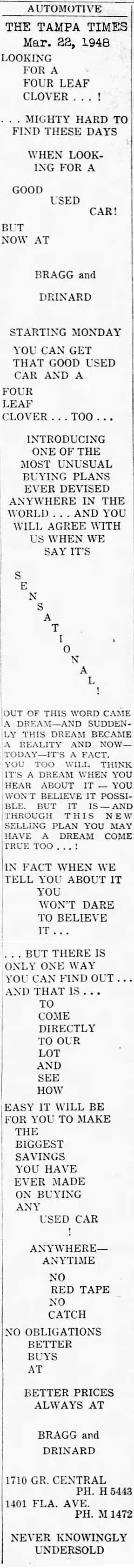 SELECT NEWSPAPER ADS BY BRAGG & DRINARD, 1948