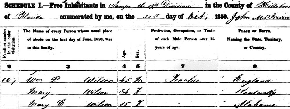Census of William P. Wilson, Tampa