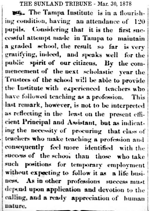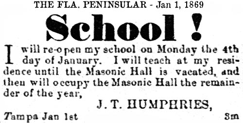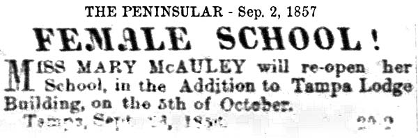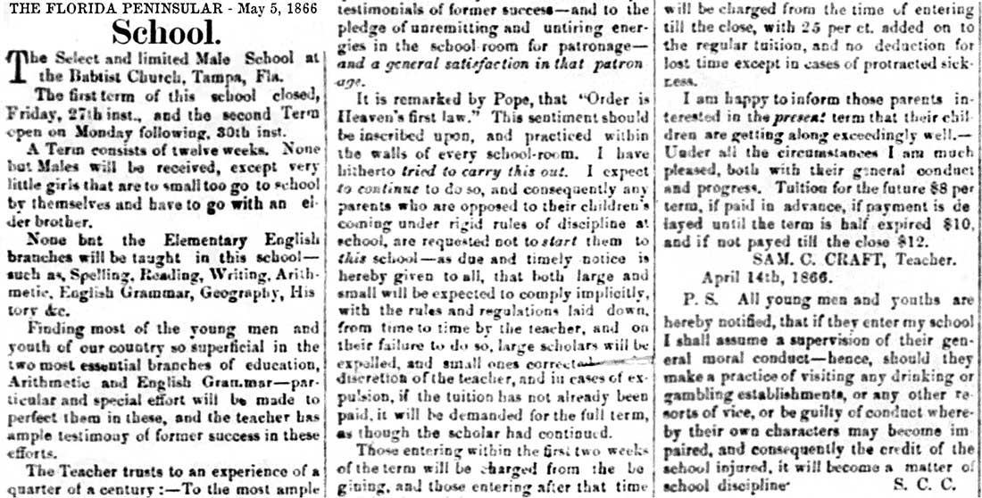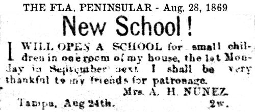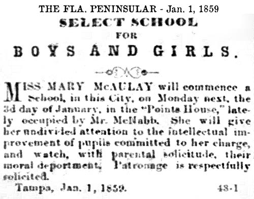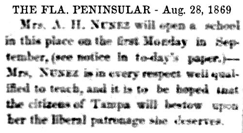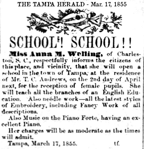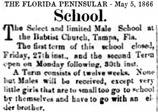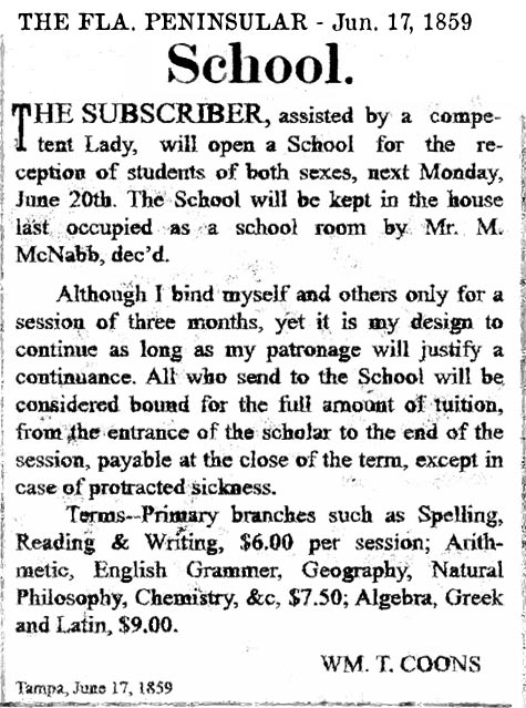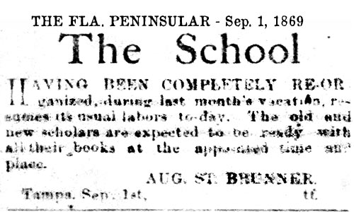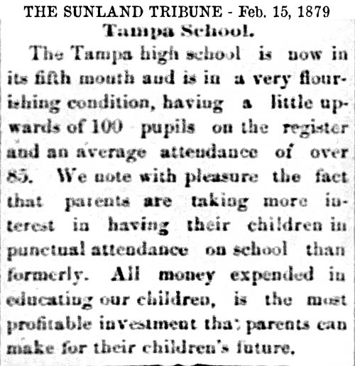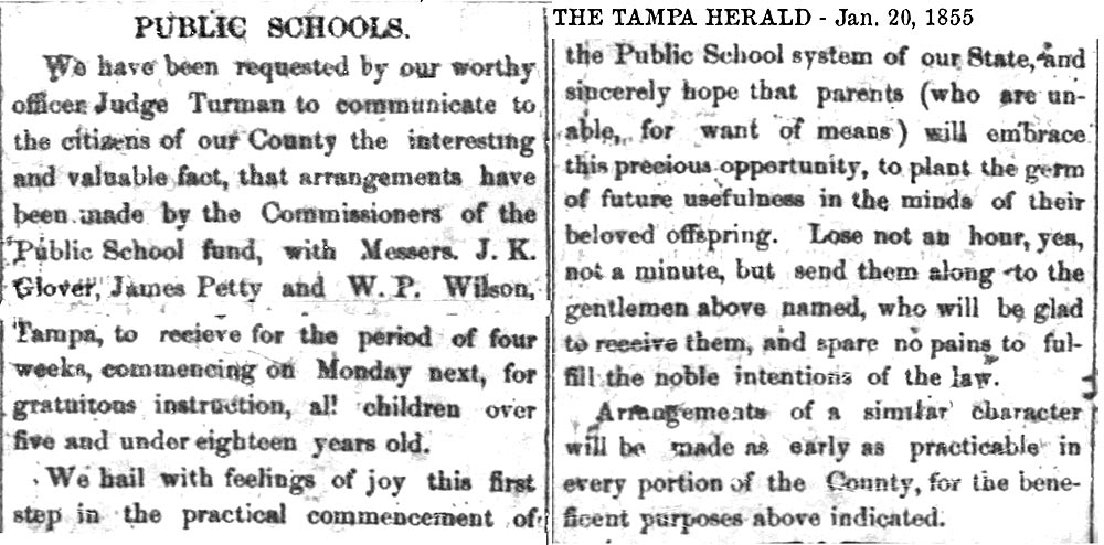 schools in Tampa exists in various records as early as the 1850s,