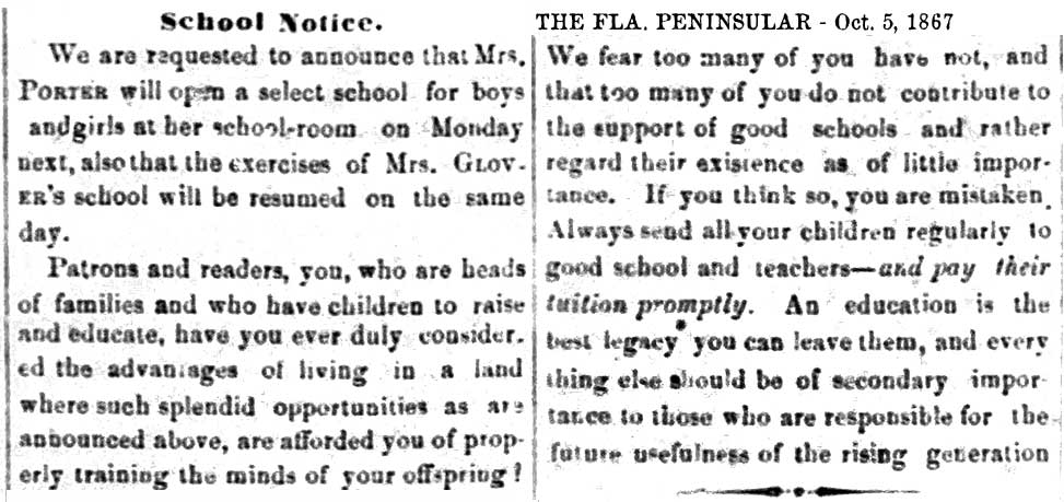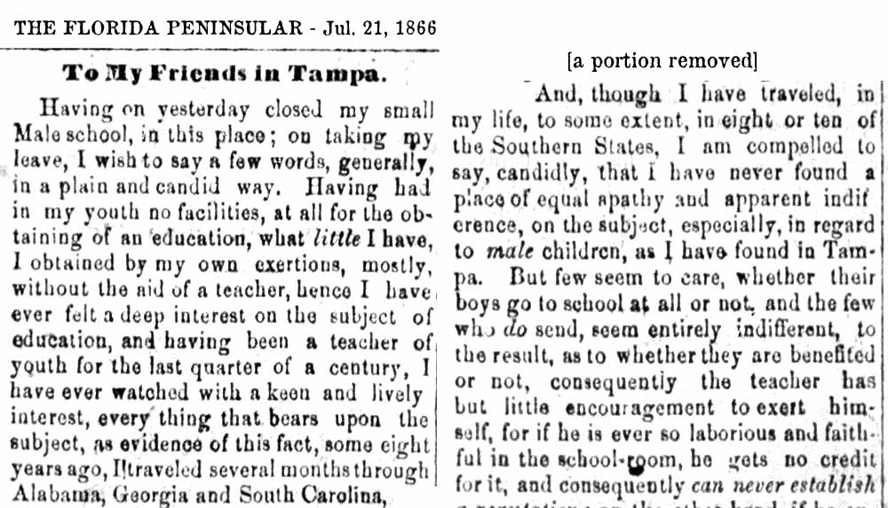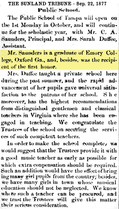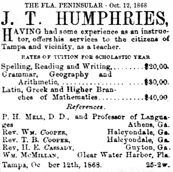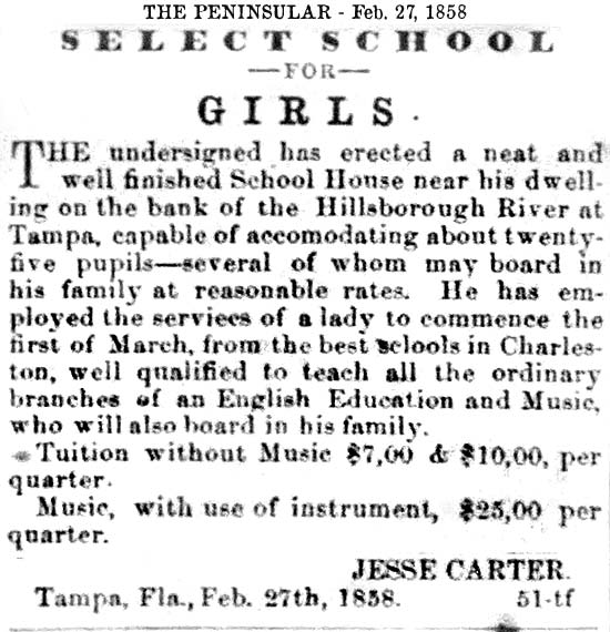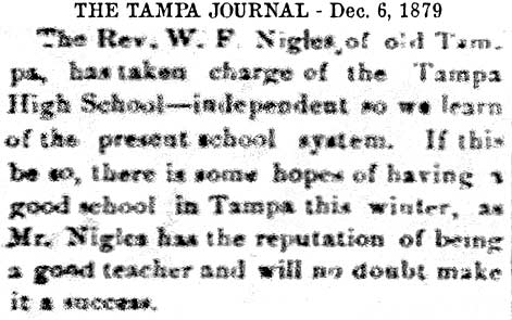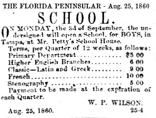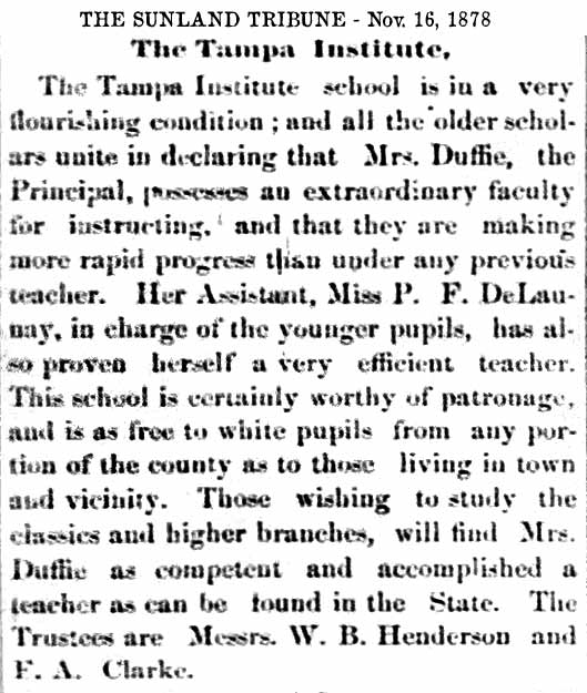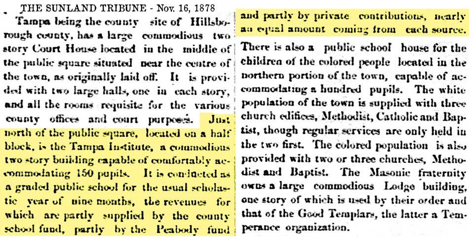 schools in Tampa exists in various records as early as the 1850s,