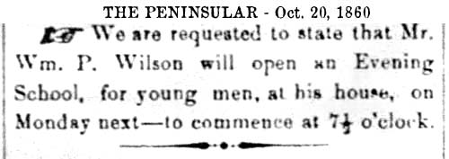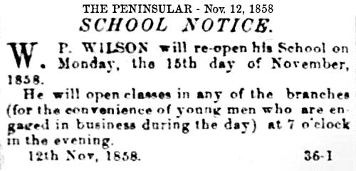 P. Wilson, opened a school and was allowed the use of the County Courthouse in
