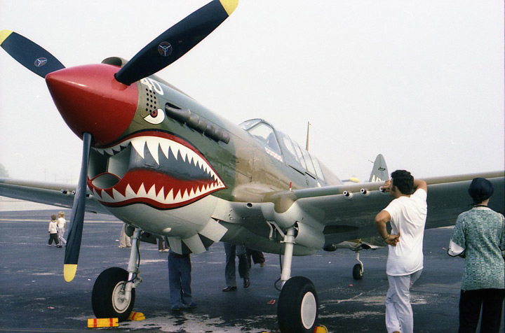 Flying Tigers was the popular name of the 1st American Volunteer Group (AVG) of the Chinese Air Force in 1941-1942. They were mostly former United States Army (USAAF), Navy (USN), and Marine Corps (USMC) pilots and ground crew, recruited under Presidential sanction and commanded by Claire Lee Chennault. Curtiss P-40 fighter aircraft of the Flying Tigers, with their iconic shark face. Not seen here is the 12-point sun of the Chinese Air Force. which was located on the underside of the wing.