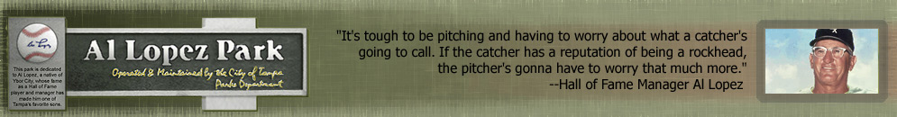 As if Lopez needs reminding of his rival, the NY Yankees' practice field "Legends Field" can be seen from the hilltops of "The Road to Recovery" in the Cancer Survivor's Plaza of Al Lopez Park.