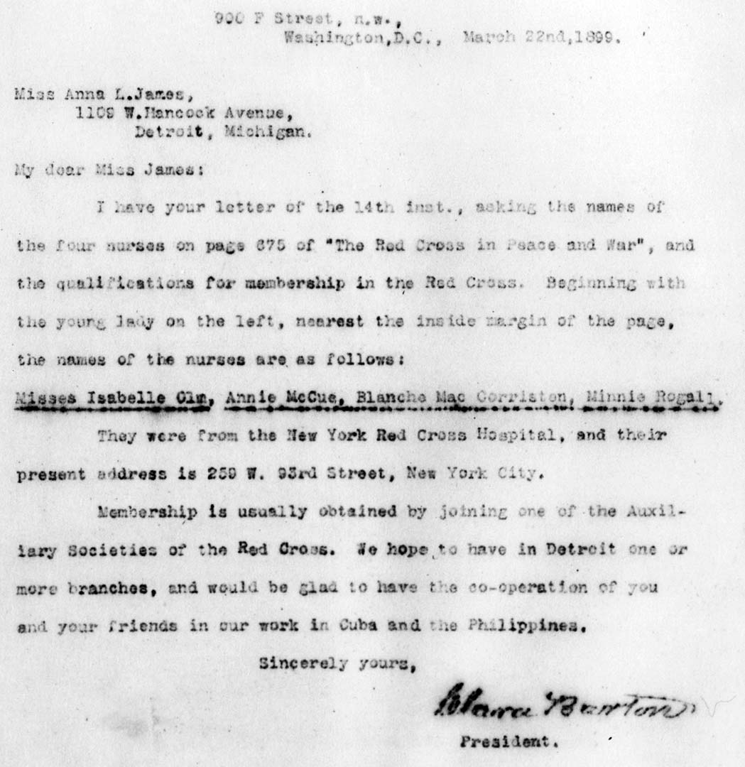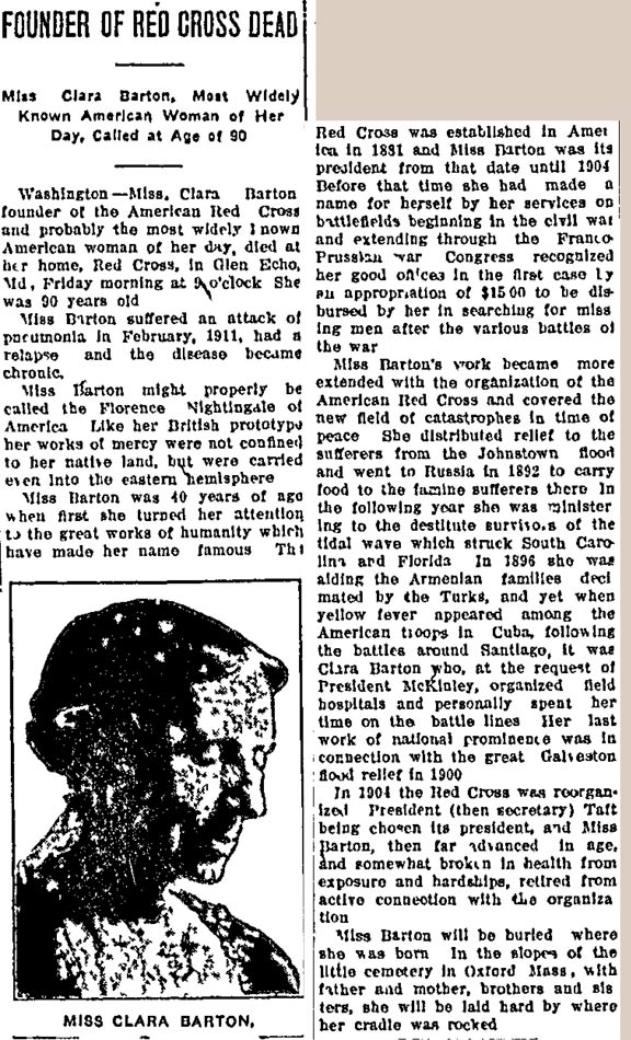 1898 through 1912 Clara Barton