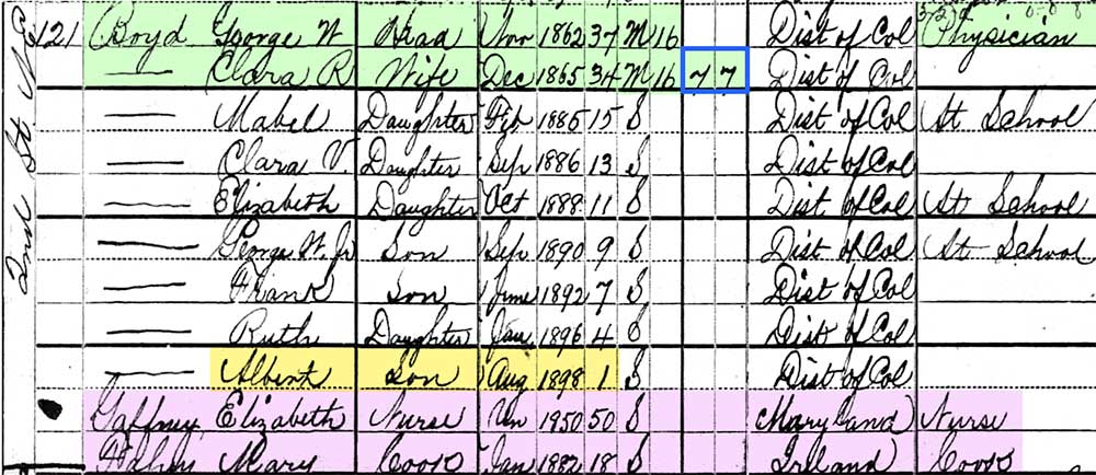 of seven children according to their 1900 Census in DC.
