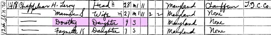 them living in Washington DC with Dorothy's divorced mother, Mary Chappelear.
