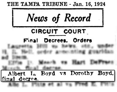Albert) came to Tampa in 1922 where he and Dorothy divorced in Jan.
