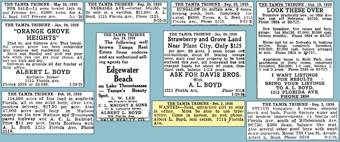 Tampa were made in the mid 1920s. Boyd frequently placed