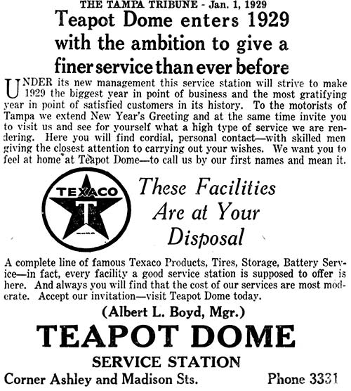 the manager of the "Teapot Dome" Texaco service station at the corner of