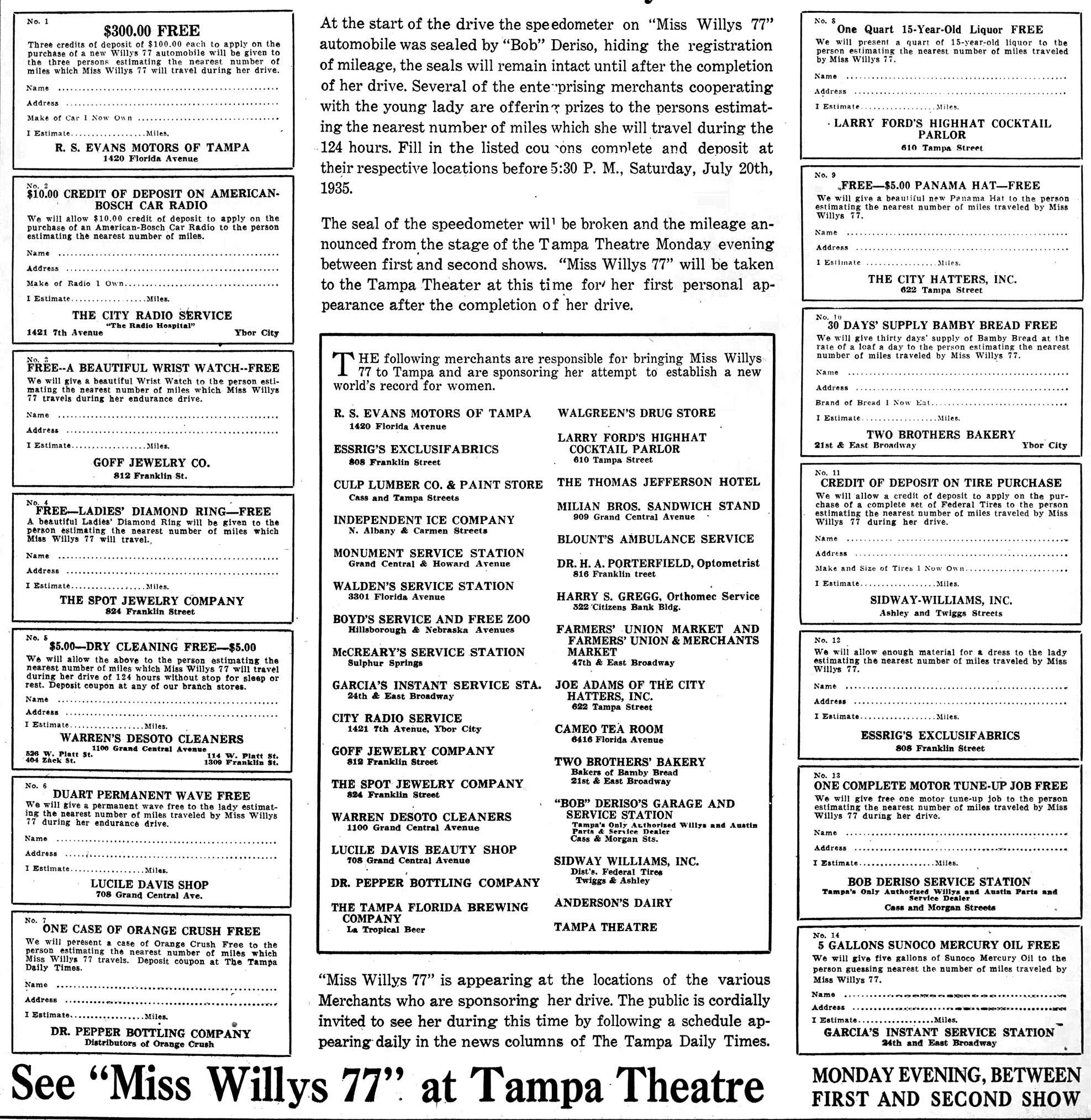 Florida. He kept a running ad going to induce sellers to bring