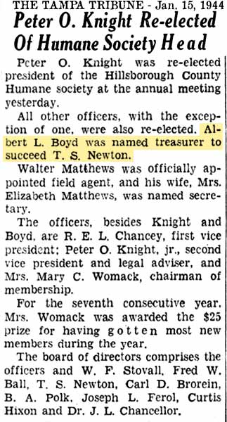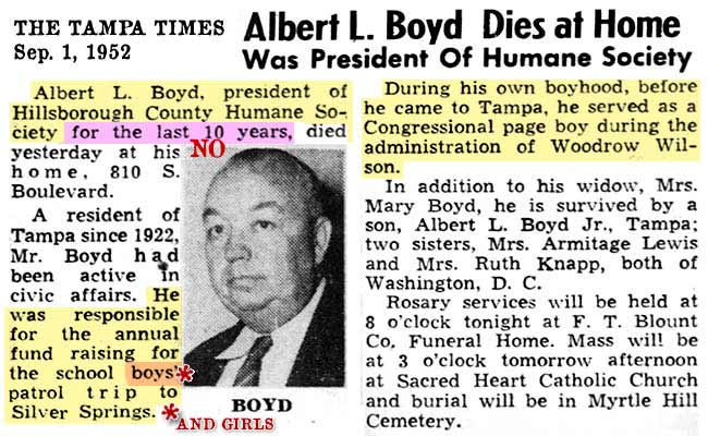 The Tampa Tribune carried the same obituary,