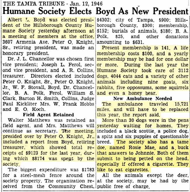 Humane Society. Peter O. Knight is