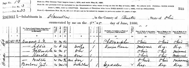 The 1880 census of Hamilton, Ohio shows S.P. Burgert and wife Addie, with