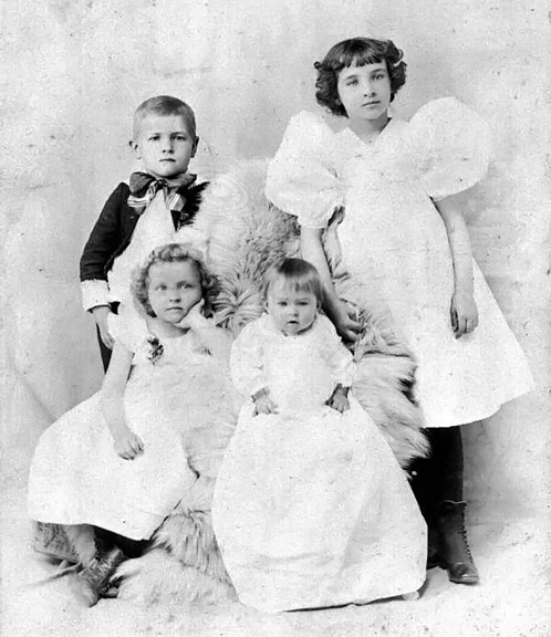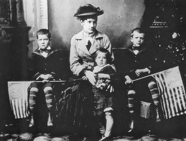 Adelina Barlow Burgert with her sons, L to R, Harry, Jean and Willard,
