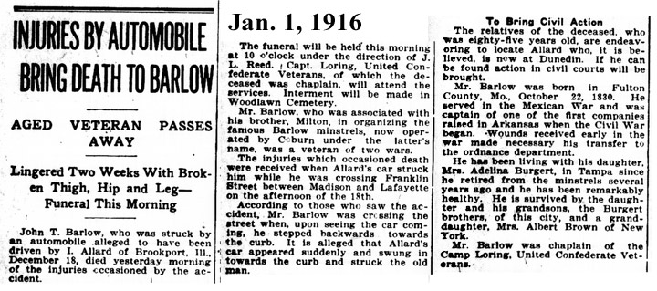 Barlow Minstrels. J.T. Barlow died Dec. 31, 1915 in Tampa, from