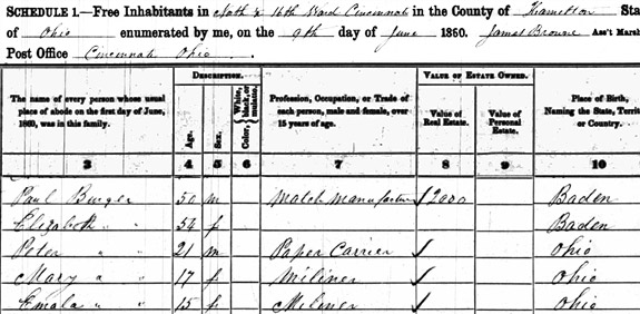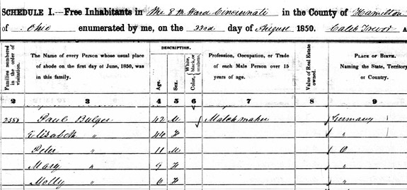 Paul Burgert was incorrectly listed as "Bulger" on his 1850 U.S. Census.