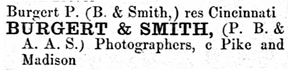 in Cincinnati as "Burgert & Smith", Photographers. |