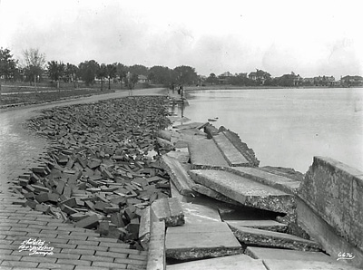 The Burgerts also took excellent news photographs. Frey remembered braving hard winds with Jean Burgert to photograph the wreckage around Tampa Bay following the hurricane of October 25, 1921. "As Frey anchored and steadied the wooden tripod, Jean hurriedly snapped pictures of Bayshore’s caved-in seawall, splintered railroad tracks and roofless homes." The two men worked all night by candle and gaslight to develop the pictures. Then, just as the exclusive photographs were about to be mailed to World Wide Photo, Al Burgert decided that the sensationalized publicity would be bad for Tampa, and so only a few of the photographs were released in the local newspaper for publication.