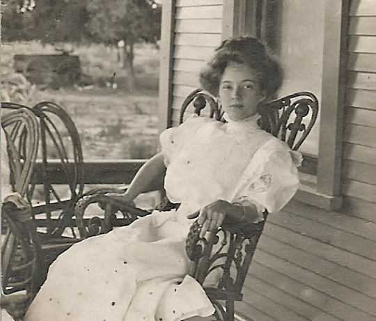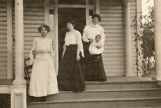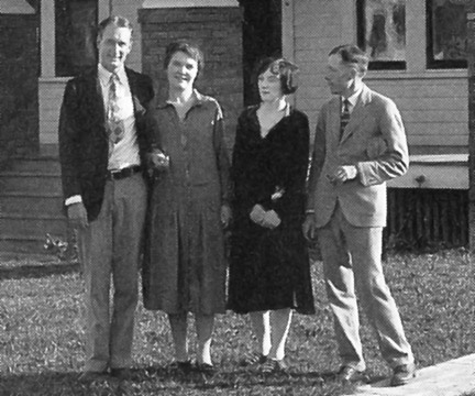Their daughter Addie is seated in front of the left tree with hands on her lap, and her sister Evelyn is sitting to the right of her. Standing behind Hazel is her sister Olive and her husband. Photo courtesy of Diane Heflin Dowling
