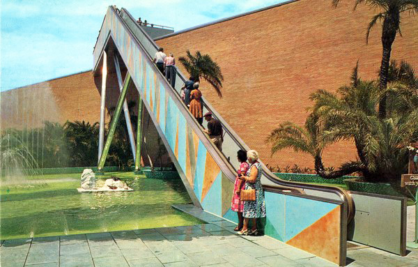 The enameled panels adorning the side of the "Stairway to the Stars" escalator at Busch Gardens were produced by enamel muralist, Paul Hultberg, who was known for his large scale architectural enamel commissions in copper, steel and aluminum.