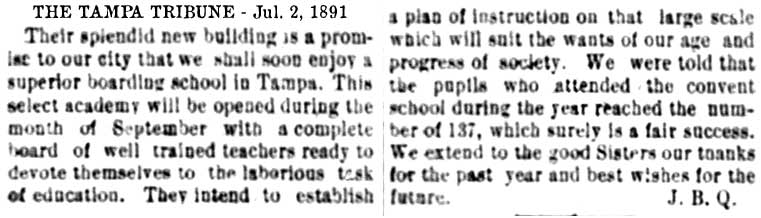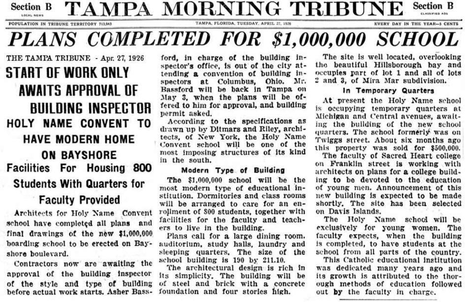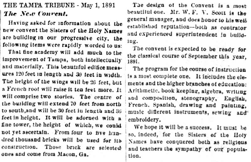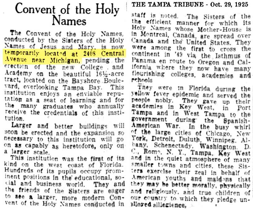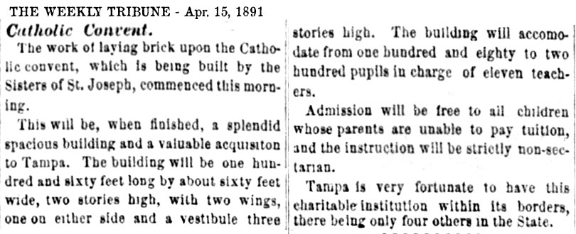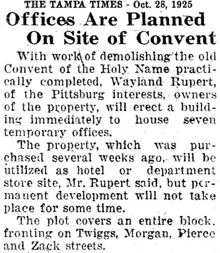 to replace the site of the convent would become the "Tampa