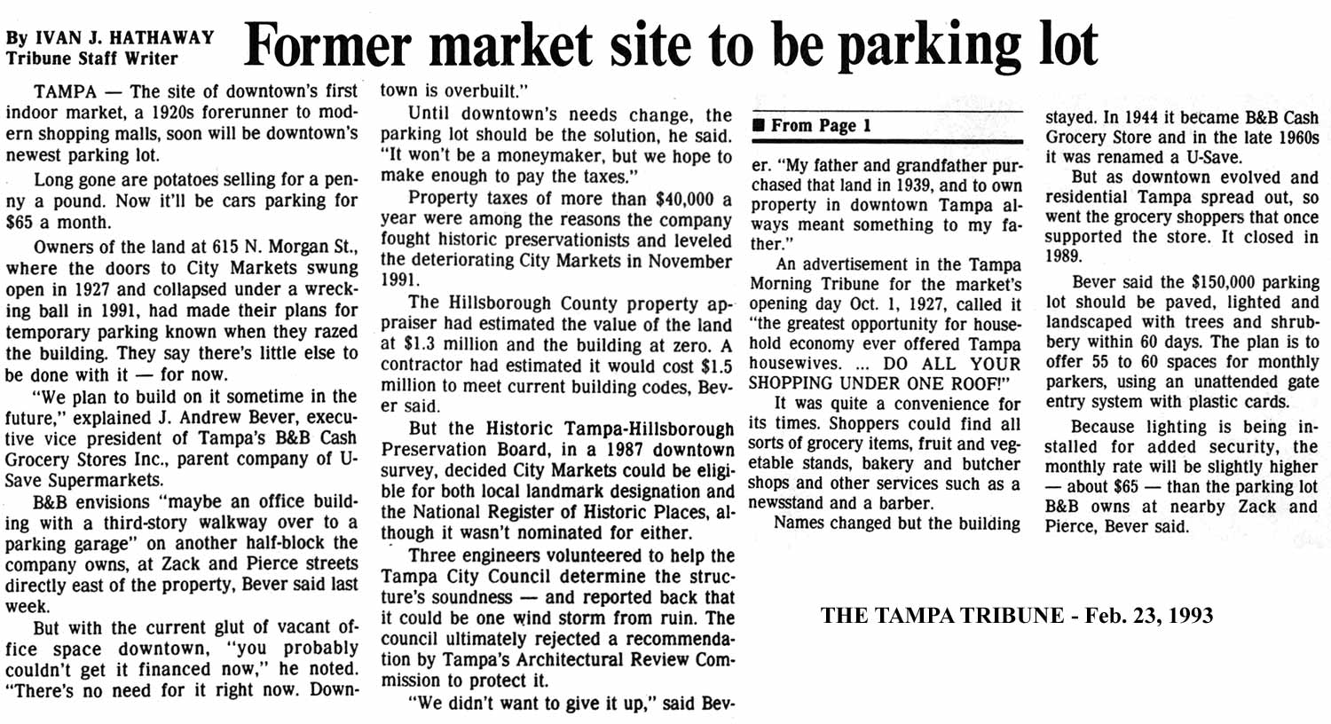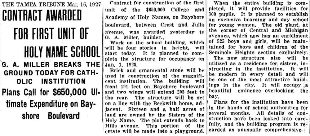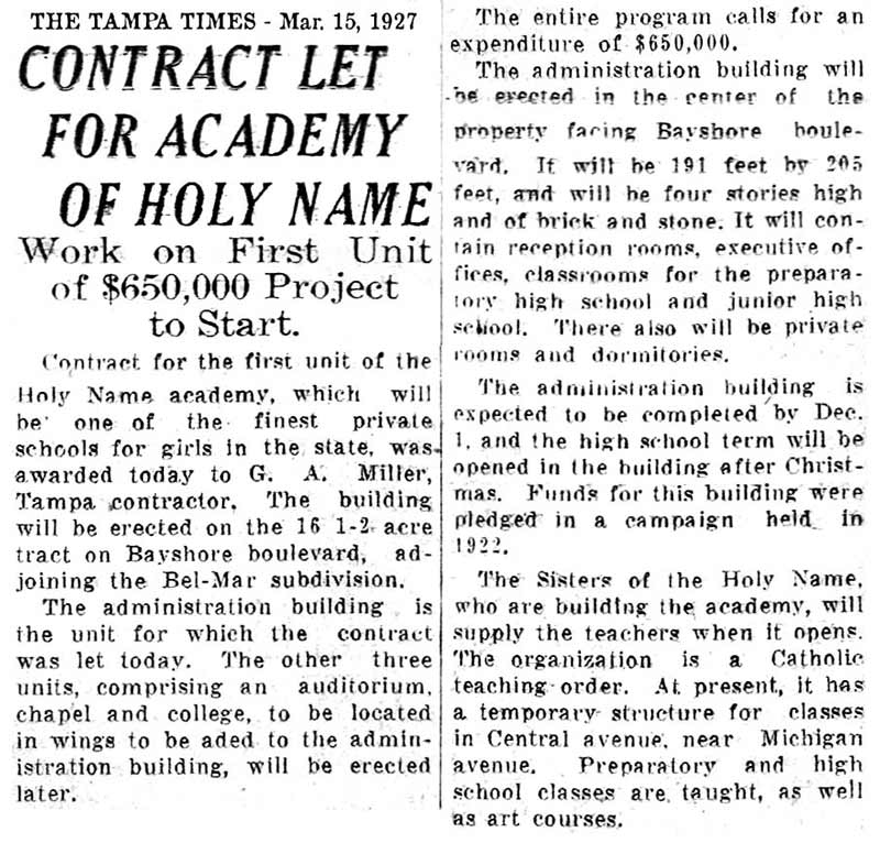 academy was awarded to G. A. Miller, a Tampa contractor, for $650k. This