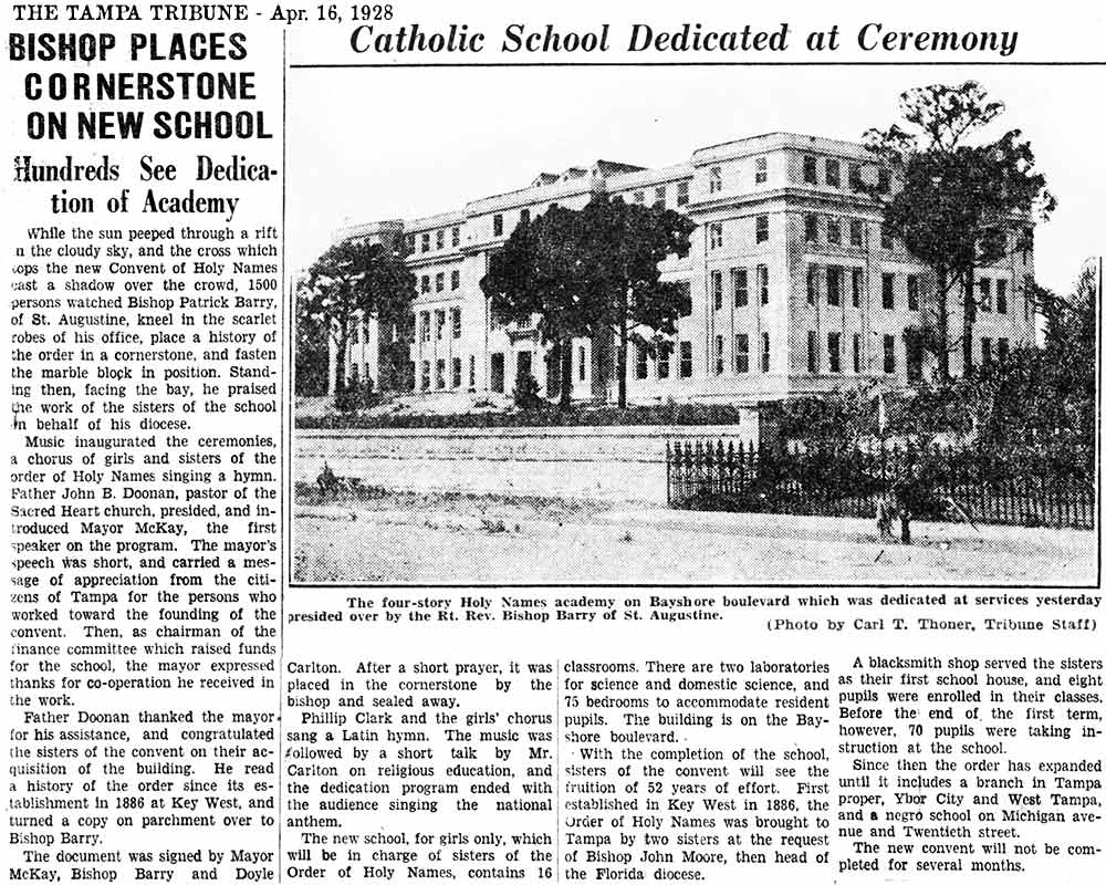 Bishop Barry of St. Augustine laid the cornerstone on April 16, 1928, and
