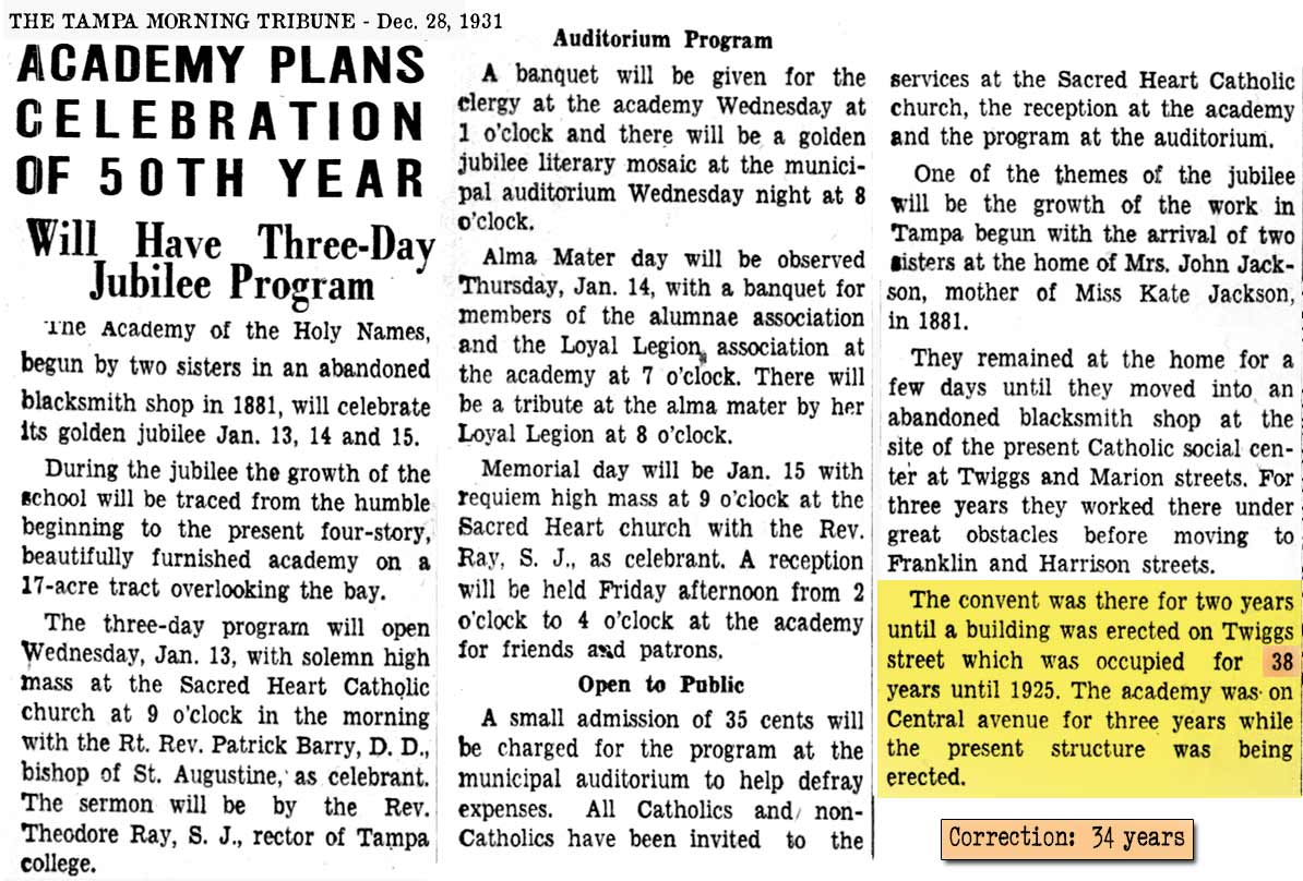 THE SISTERS ARRIVED IN TAMPA FROM KEY WEST