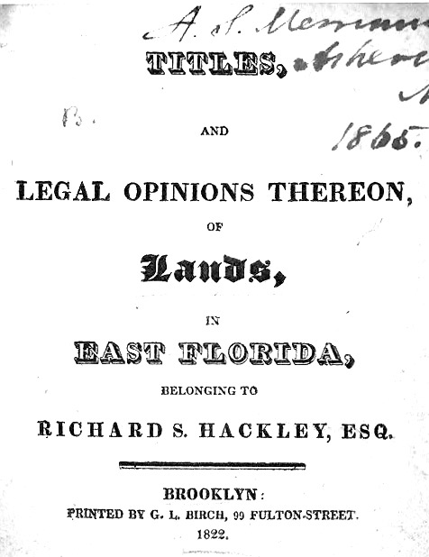 to R.S. Hackley, esq., in East Florida, 1823 AD