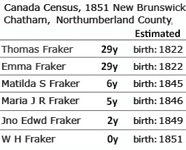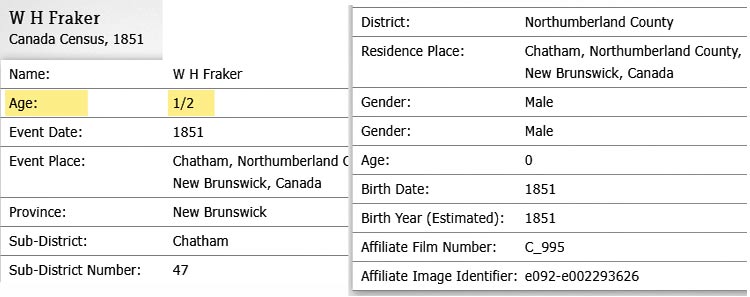later U.S. sources, his presence on the 1851 Census in Chatham at age 1/2