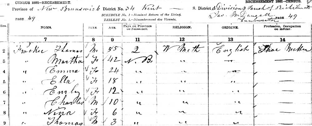 brother) Thomas appears on the Frecker's 1881 Census