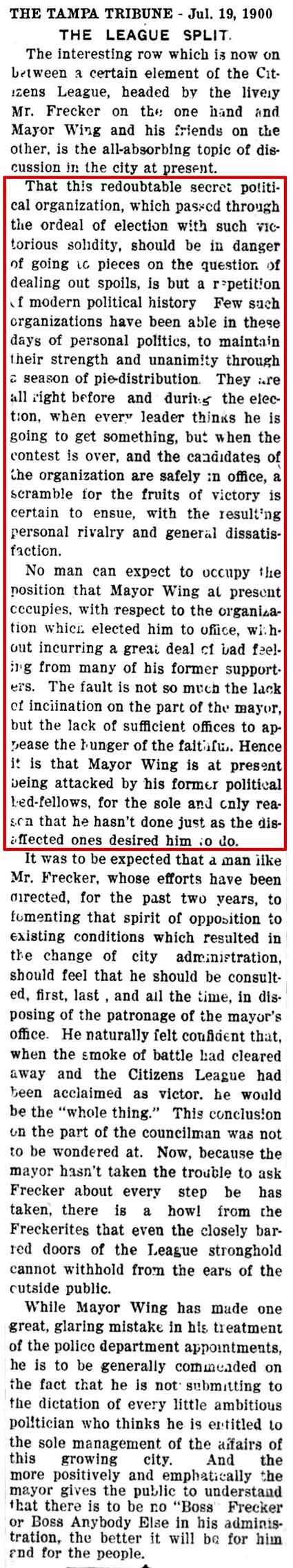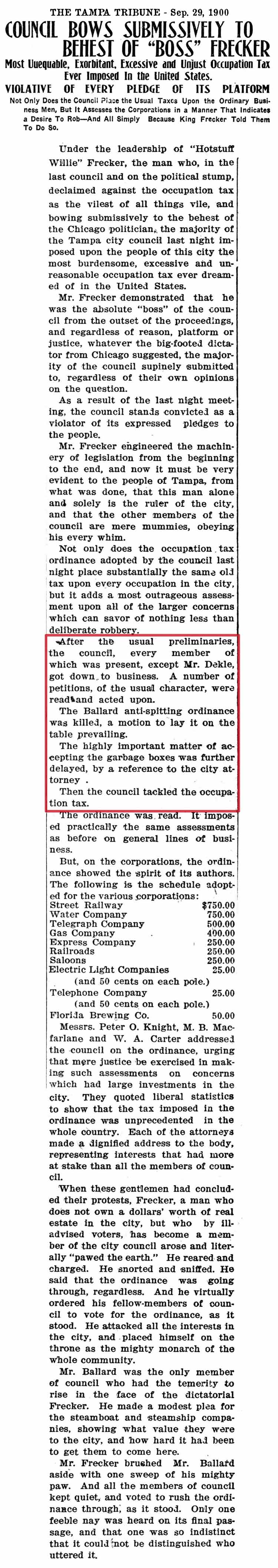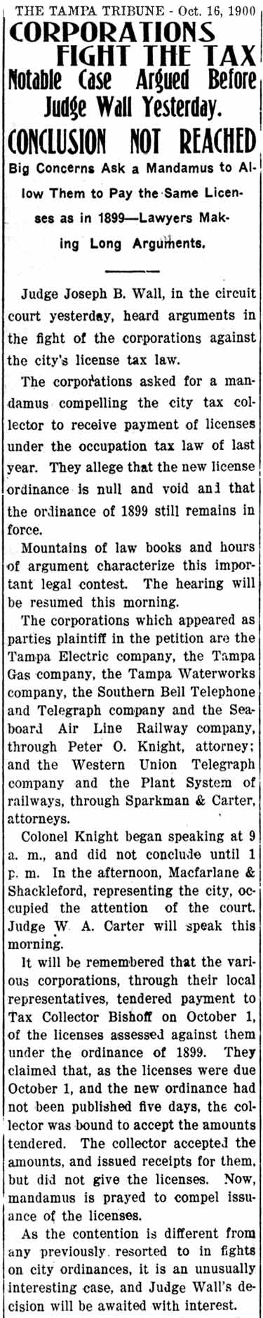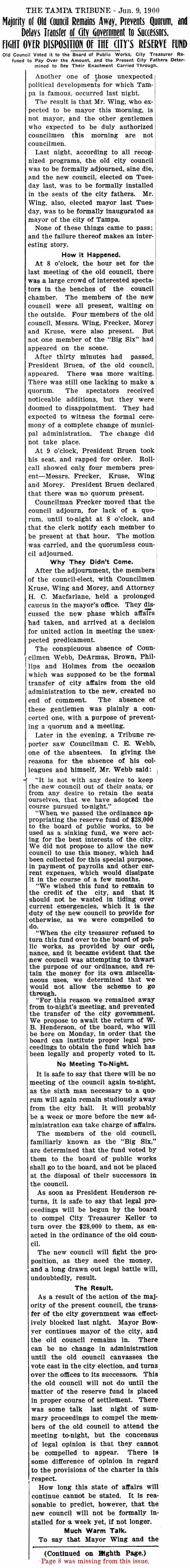 1900 to 1911, Tampa Needs A New