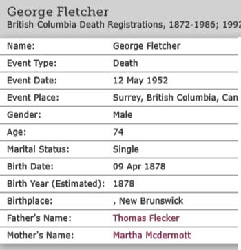 GEORGE FLETCHER who died in 1952