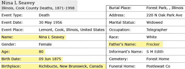 L Seavey as closest relative, same