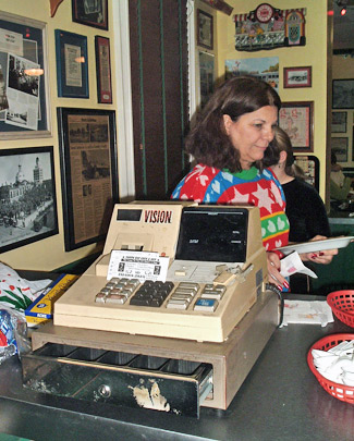 | Doug Freeman (Yvonne's son) finally gets to relax after cooking hundreds of thousands of orders over the years | The cash register that rang them up |