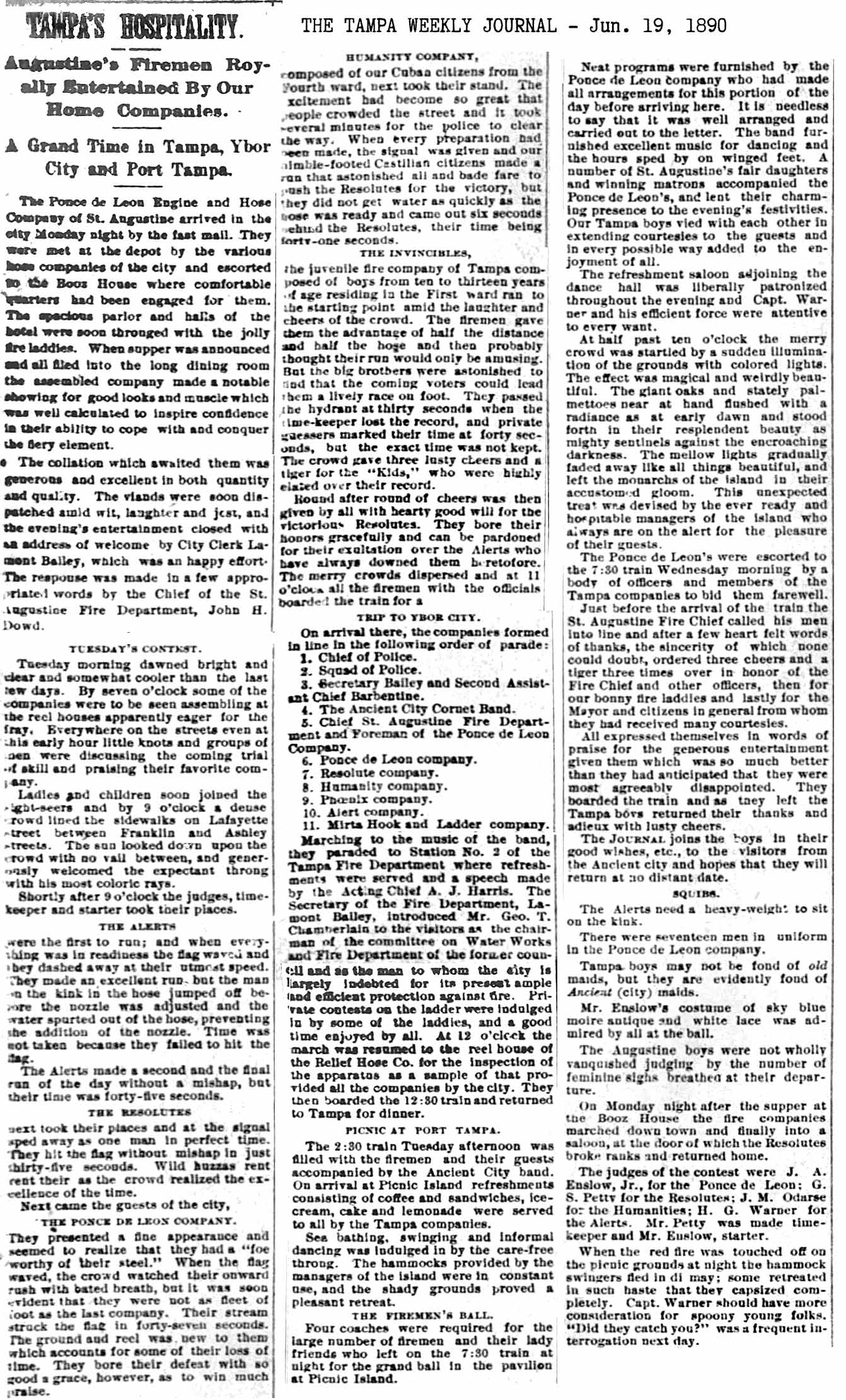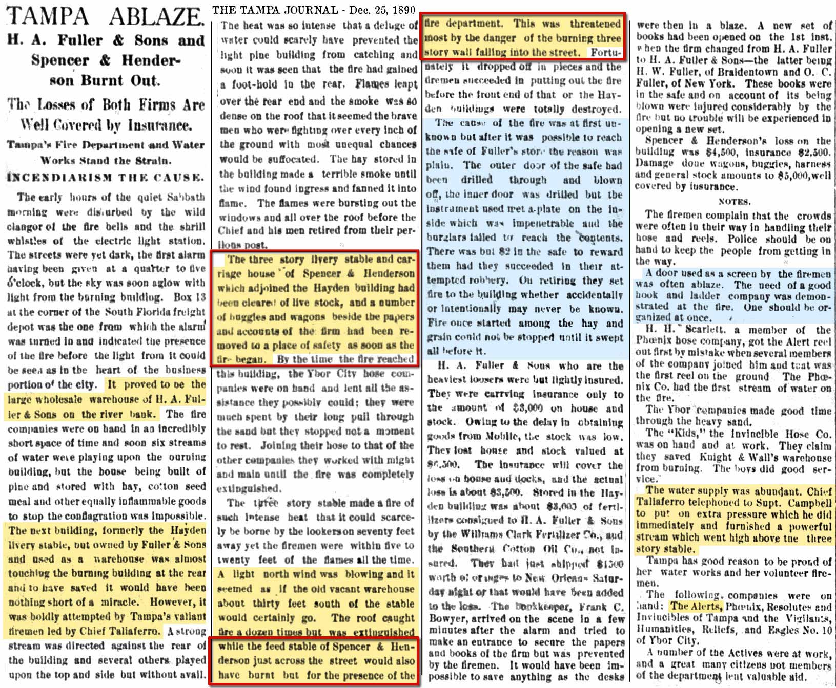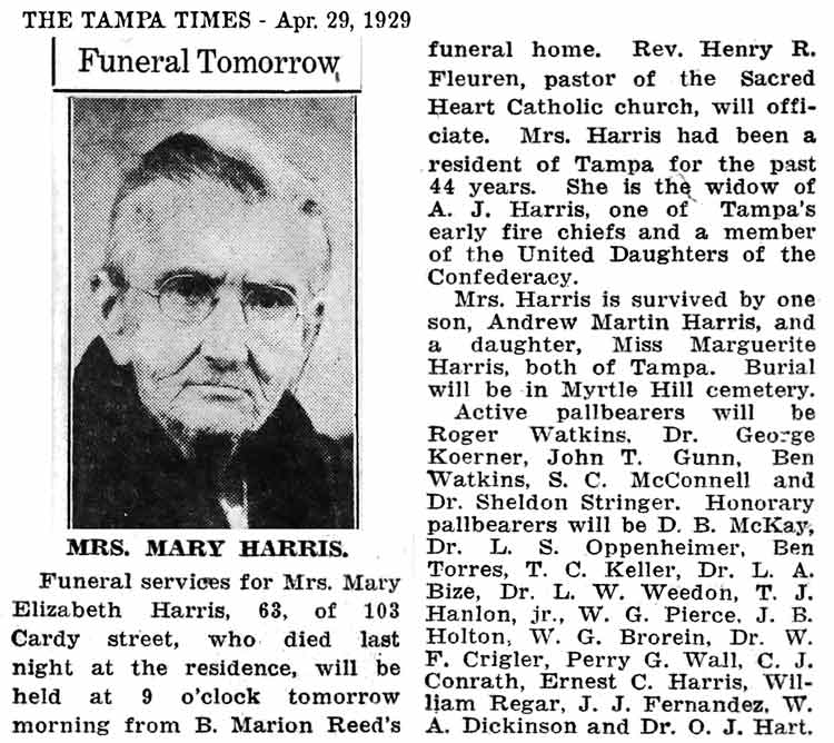 gathered from articles in Tampa newspapers,