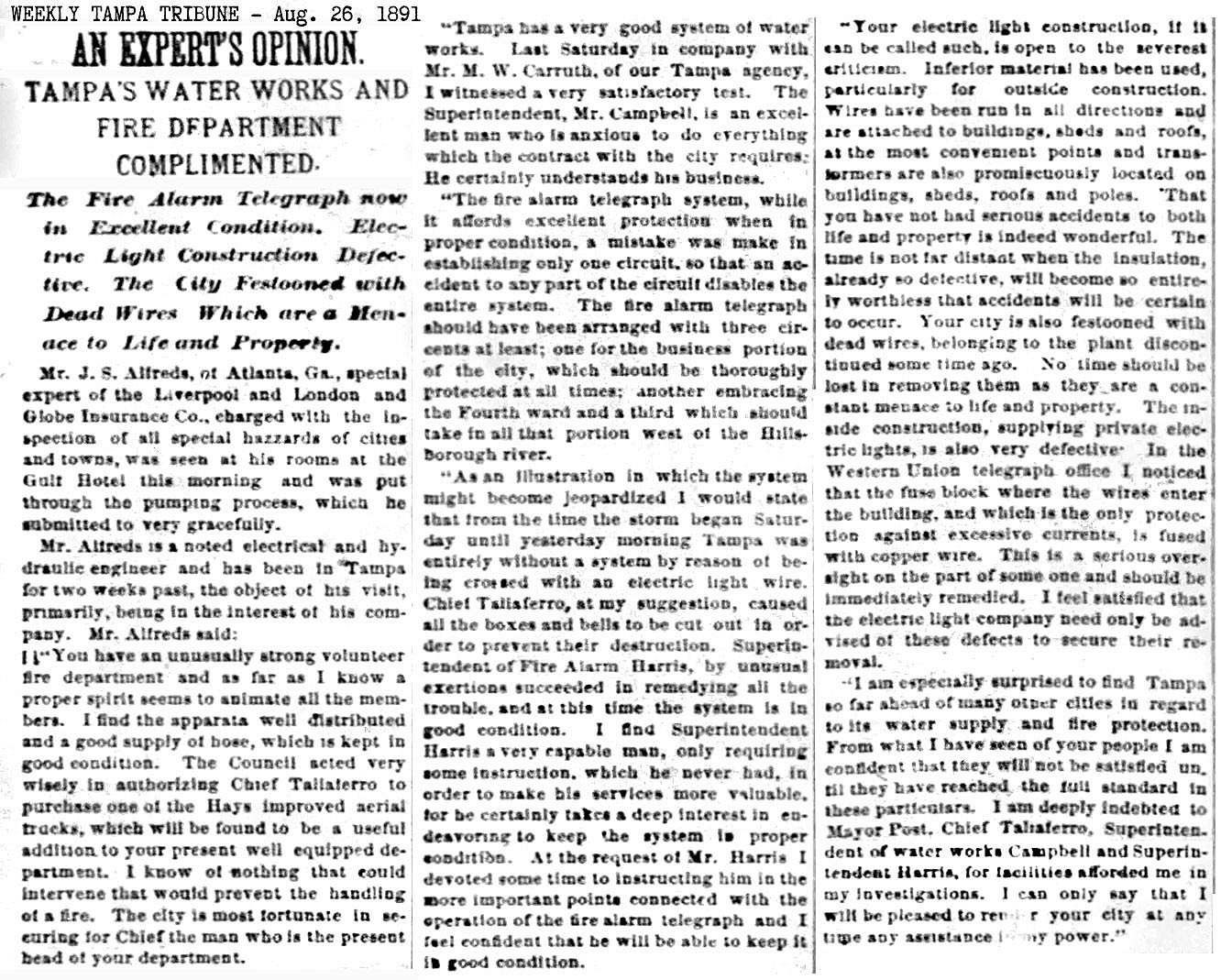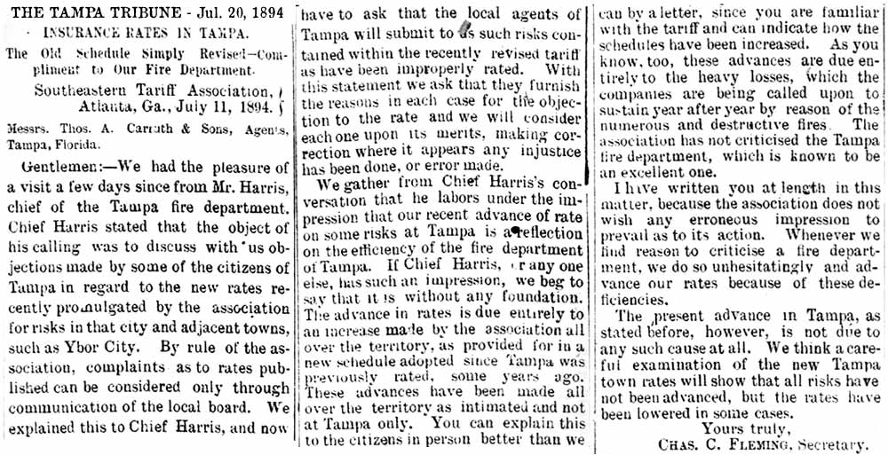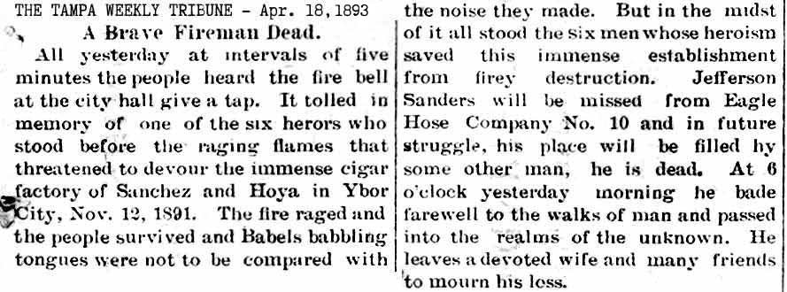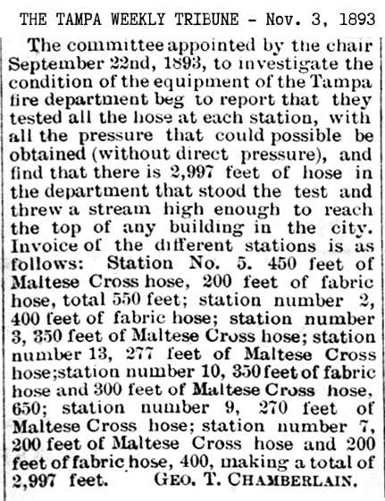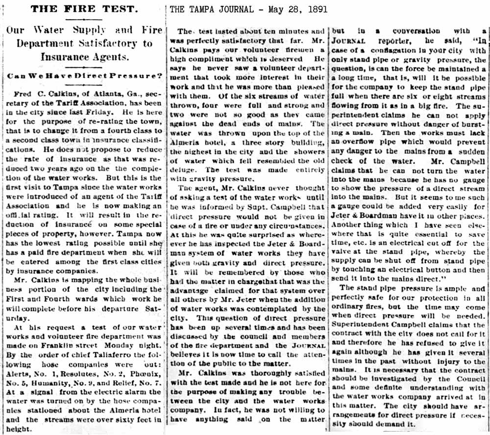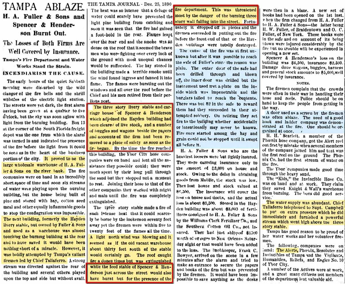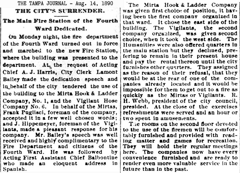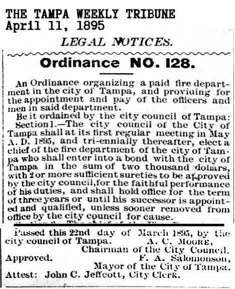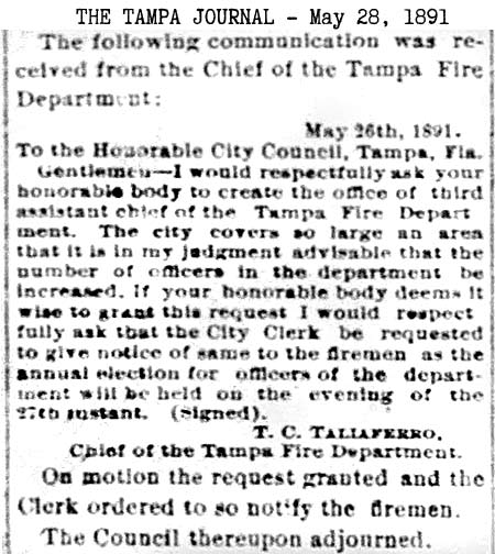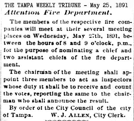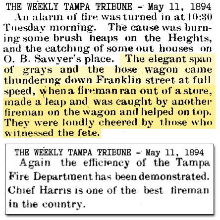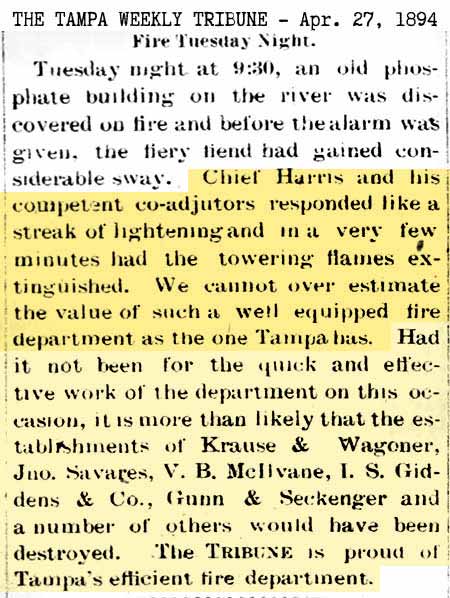 history of the Tampa Fire Dept, such as the
