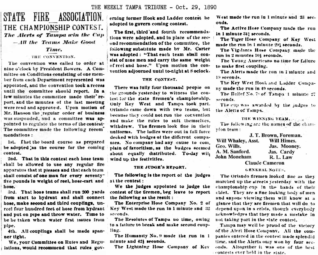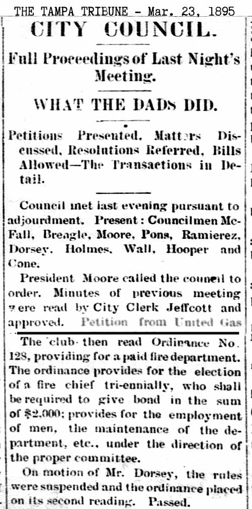 TAMPA'S FIRST PAID FIRE DEPT.