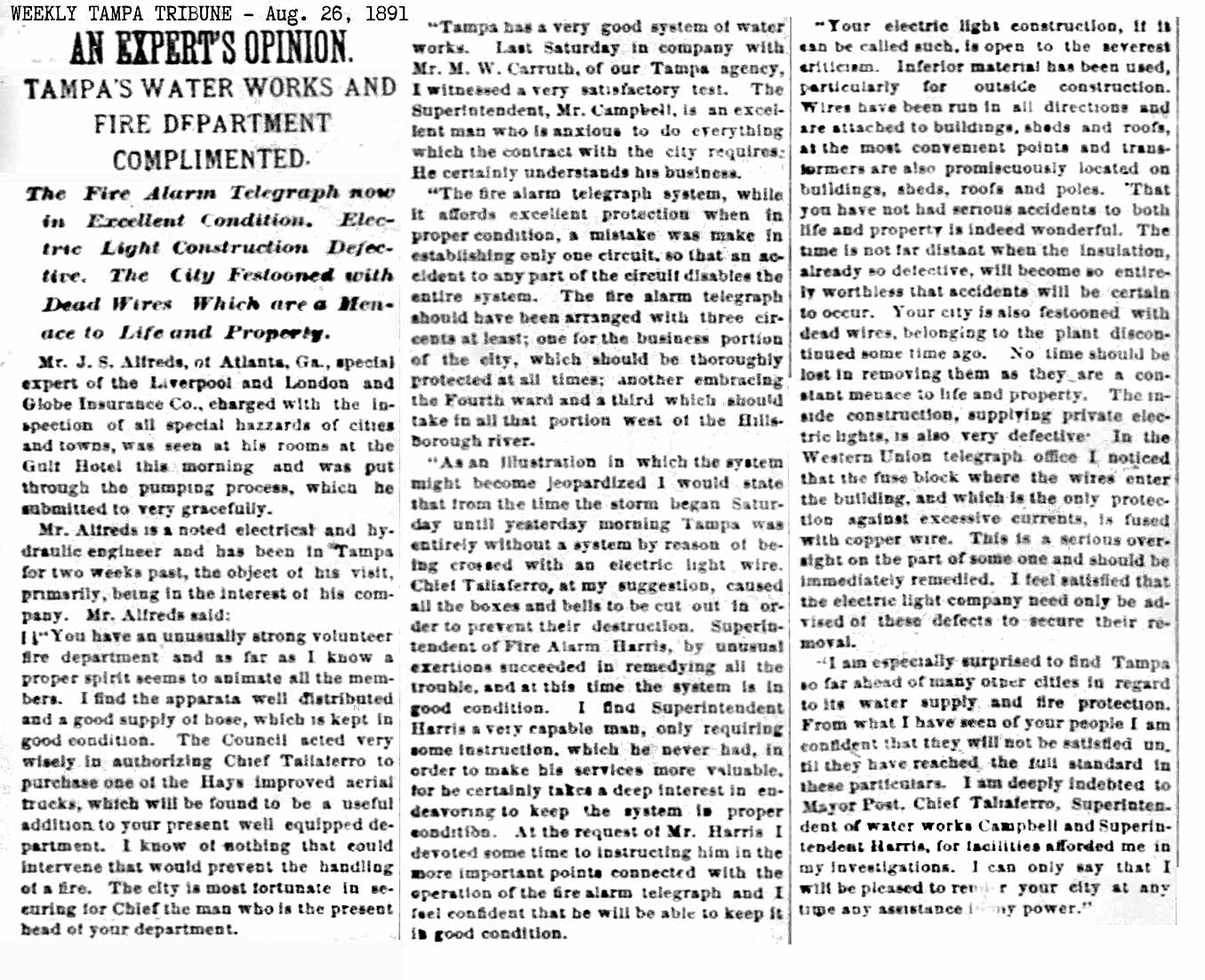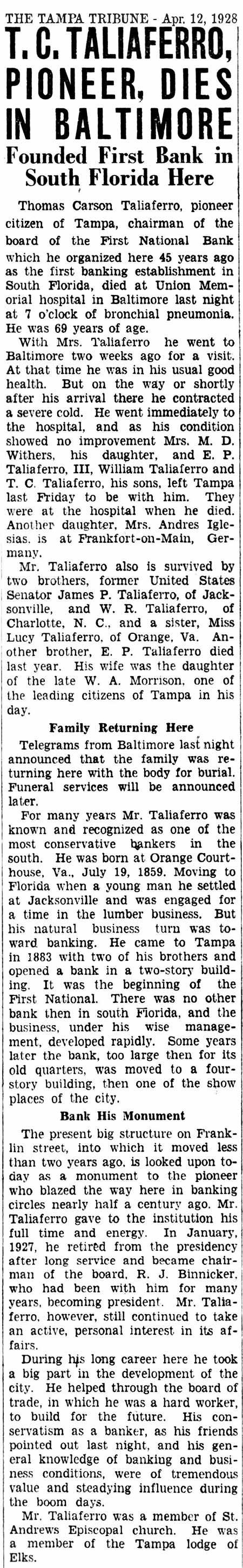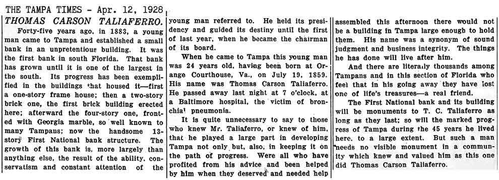 The Tampa Tribune article published the day