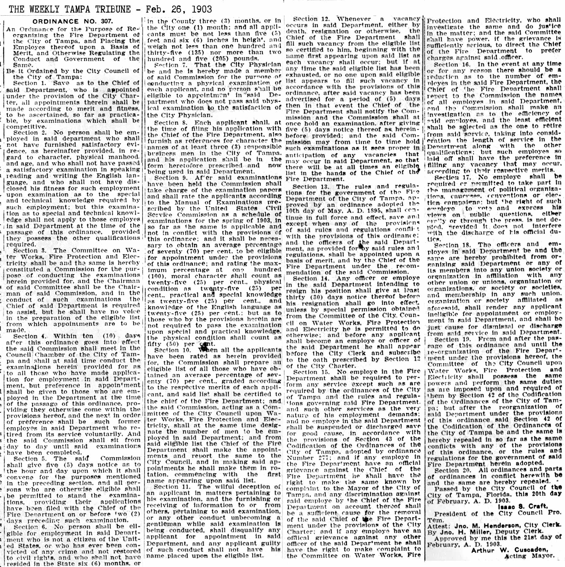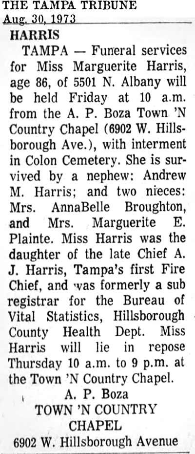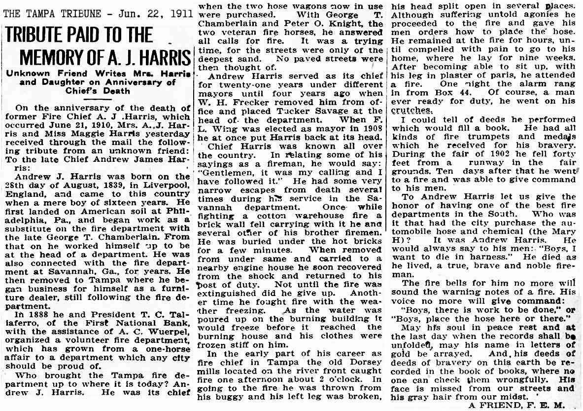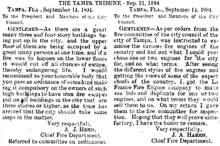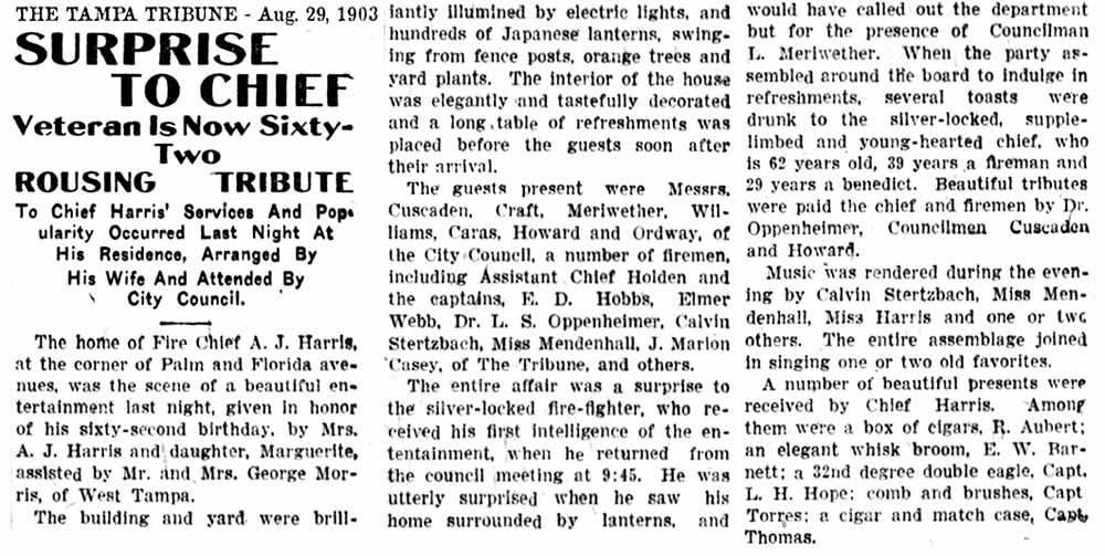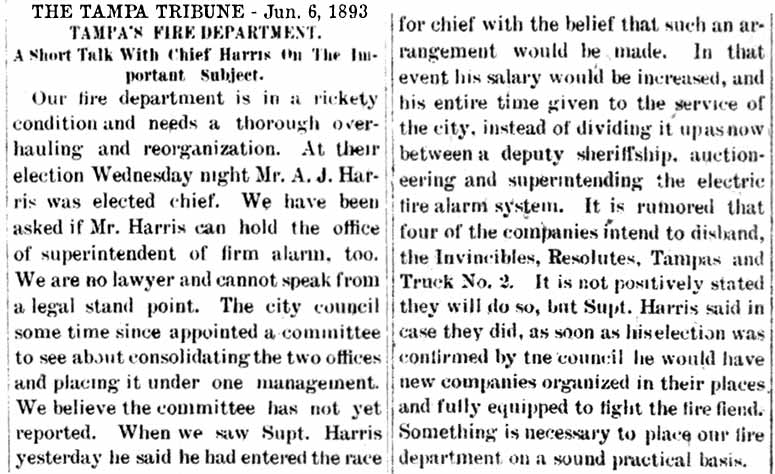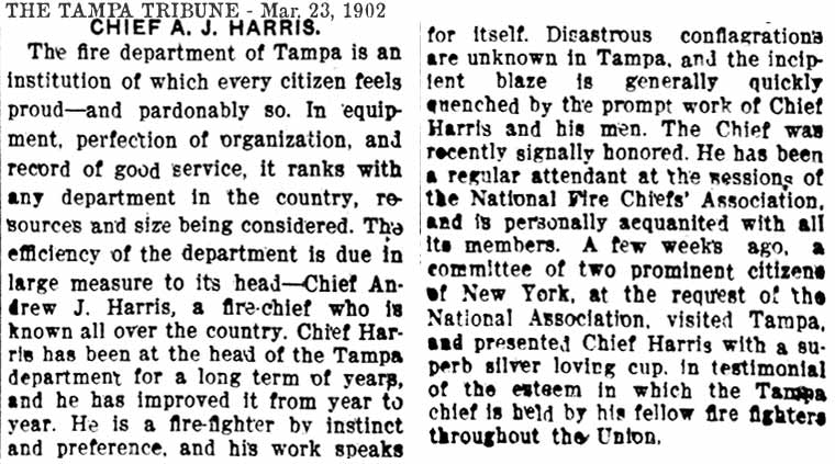 J. HARRIS - TAMPA'S FIRST CHIEF ELECTED TO