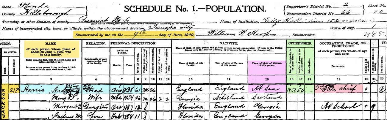 his 1900 Census in Tampa.