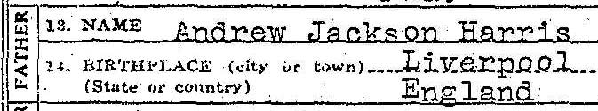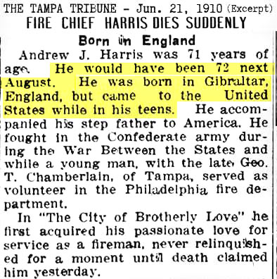 Andrew J. Harris was born (Aug 1838).