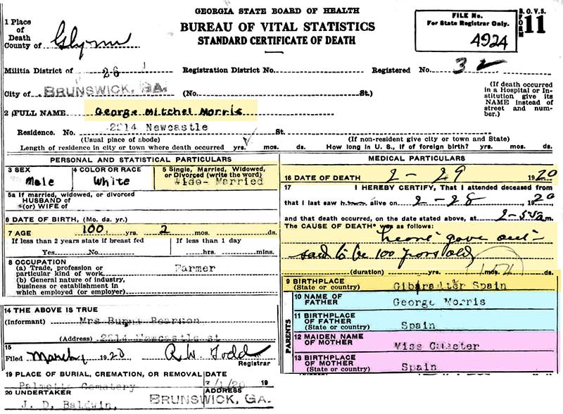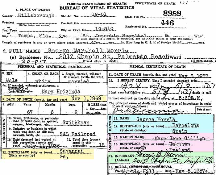 1938 death certificate of A. J.'s son,
