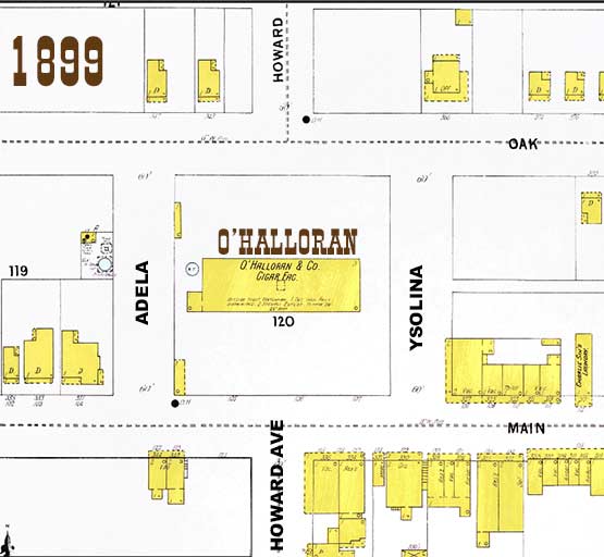 West Tampa was referred to as "Pino City" in 1892 because the del Pino brothers Antonio and Gaspar built their factory in west Tampa in June of 1892, having moved here from Key West. As Hugh Macfarlane developed the immediate area around the factory, the area was referred to as Pino City by the locals. It was never a city nor an official name., west Tampa as a city did not exist before 1895, but the whole area west of the river had always been referred to as "west Tampa." Initially, Macfarlane developed the area with a central square property that interrupted Howard Ave. (at the time named Pino Ave.) between Main St. and Oak St. (now named Union St.) On the east side of the square was Ysolina Avenue, and on the west side was Adela Ave. These were two, short, one-block streets. Today, Ysolina still exists. Because of lack of housing, transportation and convenient access, the del Pino factory closed in 1893. In 1894, O'Halloran Cigar Company moved from Key West into the vacant 3-story del Pino brothers building. The O'Halloran cigar factory burned down in 1901 as a result of arson during a workers strike. The rubble was cleared and Howard Ave. was cut through the middle of the property to make the main thoroughfare uninterrupted. In 1902 the Fernandez Brothers opened a factory where Adela Ave once was located. Adela was filled in to become usable property in 1901. This, another wooden factory, closed in 1909 and it burned down in May of that year. In 1913, this became the site of the West Tampa free Carnegie Library, seen here. |