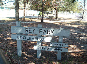 This park at Howard Ave. and Cherry Street is named for Peregrino Rey, Spanish immigrant who rose from cigar factory worker, to owner, to West Tampa city councilman, to mayor of West Tampa by 1909. This park was dedicated to him in 1916.