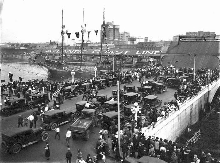1922 crowds watching the Gasparilla ship C.H. Hackley