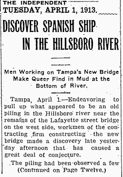 City Engineer Warren’s preliminary reports were discouraging. Warren estimated that an adequate temporary bridge would cost $12,000 to $13,000, and take two to three months to complete. In early October of 1912, Captain J. R. Slattery of the U.S. Corps of Engineers recommended a temporary bridge with a seventy-foot-wide opening, adding the caveat that people with navigational interests on the river must agree to the plan. The Tampa Daily Times estimated that a lighter, a type of flat-bottomed boat useful for carrying heavy loads in shallow water, could be rented for five dollars a day. A “high-powered launch” would be needed to operate the lighter, at an additional cost of five dollars a day. |