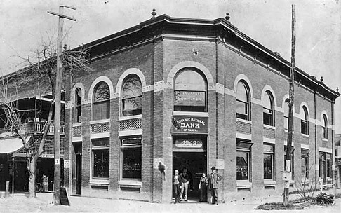 | Exchange National Bank, 1895, at Franklin & Twiggs (601 Franklin). In 1923, their new building was built on the same property and still stands today. | |