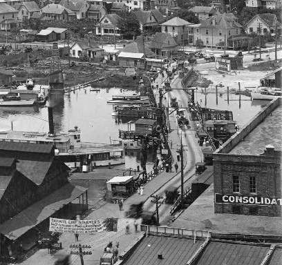 East approach to the Lafayette St. bridge from in front of Plant Park, 1918 |