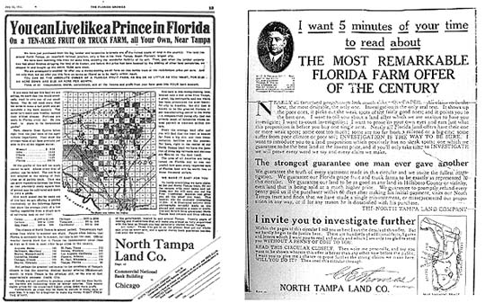 The Chicago-based company advertised its plans extensively all over the North and Midwest in newspapers, focusing heavily on Michigan, Indiana and Ohio. The company published a monthly publication, "The Hillsboro County Bulletin" at 835-837 Marquette Building in Chicago. |